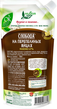 Майонез СЛОБОДА на перепелиных яйцах 67%, 200мл200 г106,60 ₽