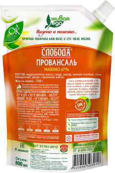 Майонез СЛОБОДА Провансаль 67%, 800мл800 г341,10 ₽