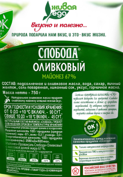 Майонез СЛОБОДА Оливковый 67%, 800мл800 г341,10 ₽