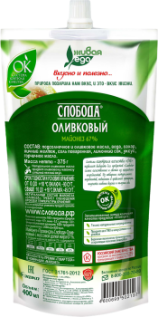 Майонез СЛОБОДА Провансаль оливковый 67%, 400мл400 г284,30 ₽