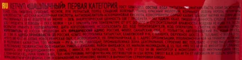 Вода питьевая, томатная паста, сахар, загуститель: крахмал кукурузный модифицированный, соль пищевая, перец красный молотый,регуляторы кислотности: уксусная и молочная кислоты, антиокислитель: аскорбиновая кислота, консерванты: сорбат калия, бензоатнатрия.
