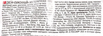 Лимоны свежие, сахар, глюкозно-фруктозный сироп, загуститель – пектины, регулятор кислотности – лимонная кислота.