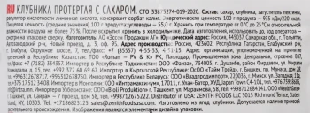 Сахар, клубника, загуститель – пектины, регулятор кислотности – лимонная кислота, консервант – сорбат калия.