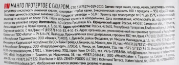 Персик, сахар, глюкозный сироп, концентрированный сок манго, загуститель – пектины, регулятор кислотности – лимонная кислота.