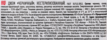 Сахар, черника, загуститель – пектины, регулятор кислотности – лимонная кислота, консервант – сорбат калия.