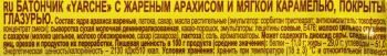 Ядра арахиса жареные, патока, сахар, заменитель масла какао нетемперируемый лауринового типа (пальмоядровое масло, эмульгаторы:сорбитан тристеарат, соевый лецитин), масло пальмовое, сыворотка сухая молочная деминерализованная, какао-порошок, эмульгатор: Е322(соевый), молоко цельное сгущенное с сахаром (молоко цельное, молоко обезжиренное, сахар (сахароза), лактоза), соль, ароматизаторы,эмульгатор: Е476. Может содержать диоксид серы, следы глютена, яиц, орехов и продуктов их переработки.