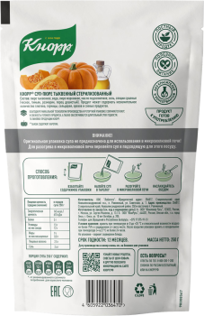 Пюре тыквенное, вода, пюре морковное, масло подсолнечное, соль, специи сушеные (чеснок, тимьян, розмарин, перец душистый).