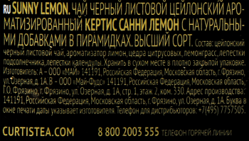 Чай черный CURTIS Sunny Lemon с ароматом цитрусовых, 20пир40 г169 ₽
