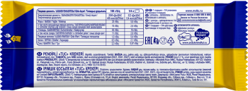 Мука пшеничная, сахар, масла растительные (рапсовое, пальмовое), вода, сироп глюкозно-фруктозный, молоко сухое обезжиренное,разрыхлители (гидрокарбонат натрия, гидрокарбонат аммония), ароматизатор, соль, продукт яичный, эмульгатор (лецитин соевый),витаминно-минеральный комплекс (ниацин, витамин B6, витамин B1, витамин B2, фолиевая кислота).