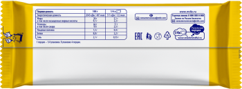 Пшеничная мука, молочный шоколад (сахар, масло какао, какао тертое, молоко сухое обезжиренное, сыворотка сухая молочная, жирмолочный, эмульгаторы (лецитин соевый, Е476), ароматизатор), молочная начинка (сахар, масло растительное, молоко сухое цельное,сыворотка сухая молочная, лактоза, эмульгатор – лецитин соевый, ароматизатор, регулятор кислотности – кислота лимонная), маслорастительное, сахар, вода, сыворотка сухая молочная, сироп глюкозный, соль, разрыхлители (гидрокарбонат аммония, гидрокарбонатнатрия), ароматизатор.