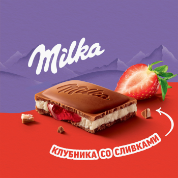 Шоколад молочный MILKA с клубнично-сливочной начинкой, 80г80 г160 ₽
