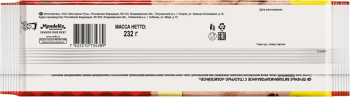 Сахар, какао тертое, печенье дробленое Орео (мука пшеничная, сахар, масло пальмовое, какао-порошок, сироп глюкозно-фруктозный,крахмал кукурузный, разрыхлители (гидрокарбонат натрия, гидрокарбонат аммония), соль, эмульгатор (лецитин соевый), регуляторыкислотности (E503 (i), E524), ароматизатор), сыворотка сухая молочная, жир растительный (пальмовое масло), масло какао, какаотертое, масло какао, молоко сухое цельное, жир молочный, молоко сухое обезжиренное, эмульгаторы (лецитин соевый, E476) ароматизатор.В молочной шоколадной массе содержание общего сухого остатка какао – не менее 25%, сухого обезжиренного остатка какао – не менее2,5%, сухого общего остатка молока – не мене 12%, молочного жира – не менее 2,5%.