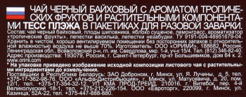Чай черный байховый, плоды шиповника, яблоко сушеное, лимонное сорго, ароматизатор тропические фрукты, лепестки василька, лепесткинезабудки.
