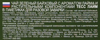 Чай зеленый TESS Lime с цедрой цитрусовых и ароматом лайма, 100пак200 г325 ₽
