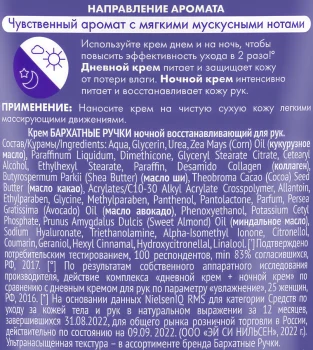 Крем ночной для рук БАРХАТНЫЕ РУЧКИ питательный, восстанавливающий, 80мл80 г190,70 ₽