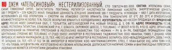 Апельсины свежие, сахар, глюкозный сироп, загуститель – фруктовый пектин, регулятор кислотности – лимонная кислота.