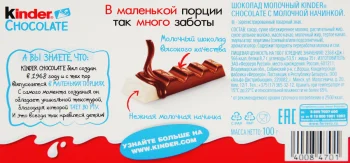 • Шоколад KINDER Chocolate, 100г