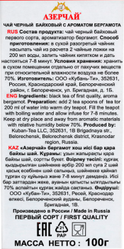 Чай черный байховый, высшего сорта, ароматизатор бергамот.