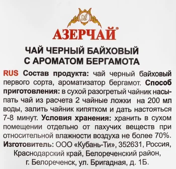 Классический Aзерчай Бергамот представляет собой смесь качественного черного чая. Чай специально ароматизирован натуральнымбергамотом.