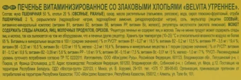 Мука пшеничная 49,4%, хлопья 19,9% (овсяные, ржаные), сахар, масла растительные (пальмовое, рапсовое), вода, отруби пшеничные 2,2%,сироп глюкозно-фруктозный, разрыхлитель (гидрокарбонат натрия), соль, солодовый экстракт из ячменя 0,3%, эмульгатор (лецитинсоевый), регулятор кислотности (дигидропирофосфат натрия), витаминно-минеральный комплекс (витамин B1; витамин В2; витамин В6;витамин РР; витамин Вс; железо).