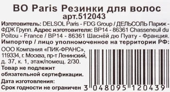 Резинки для волос BO PARIS помогут надежно зафиксировать локоны, соорудив повседневную или праздничную прическу. Они изготовлены из эластичного материала, свободно растягиваются и восстанавливают первоначальную форму после использования. Резинки легко надеваются и снимаются. Они хорошо держатся на волосах, не травмируя их структуру и не оставляя заломов.