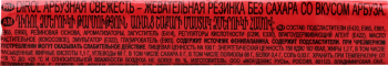 Подсластители (сорбит, мальтит, мальтитный сироп, аспартам, сукралоза, ацесульфам калия), резиновая основа, регуляторы кислотности(Е330, Е296), ароматизаторы, загуститель (Е414), влагоудерживающий агент (Е422), краситель (Е171), масло растительное (кокосовое),эмульгатор (лецитин подсолнечный), глазирователь (Е903), антиокислитель (Е321)