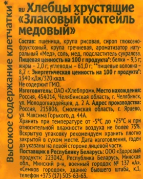 Пшеница, крупа рисовая, фруктоза, крупа гречневая, ароматизатор натуральный медовый, соль йодированная, подсластитель сукралоза,мед.