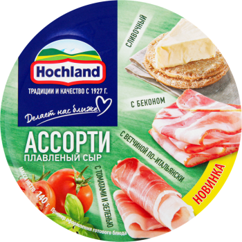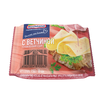 Сыр плавленый HOCHLAND с ветчиной 45%, ломтики, без змж, 150г150 г289 ₽