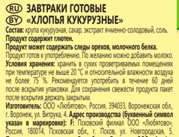 Крупа кукурузная, сахар, экстракт ячменно-солодовый (содержит глютен), соль.