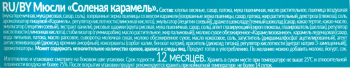 хлопья овсяные, мука пшеничная, патока, взорванные зерна пшеницы(взорванные зерна пшеницы, сахар, патока, масло кокосовое рафинированноедезодорированное, глюкоза, соль, краситель: сахарный колер IV,регулятор кислотности: лимонная кислота, эмульгатор: соевый лецитин),сахар, пшеница воздушная (мука пшеничная, мука рисовая, сахар, соль),масло подсолнечное высокоолеиновое, карамельные кусочки (сахар,глюкозный сироп, масло сливочное, молоко сухое обезжиренное, соль,разрыхлитель: гидрокарбонат натрия, эмульгатор: моно- и диглицеридыжирных кислот), ароматизатор натуральный, антиокислители: кислотааскорбиновая, токоферолы, концентрат смеси; эмульгатор: лецитин соевый.