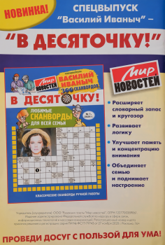 Журнал МИР НОВОСТЕЙ Суперкроссворды – сборник свежих и интересных кроссвордов, составленных авторами журнала. В каждом номере статья об актерах советского кино, писателях или поэтах с занимательными фактами из их биографии.