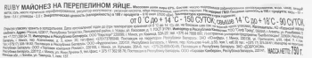 Масло подсолнечное рафинированное дезодорированное, вода, сахар, яичный желток, соль, масло горчичное нерафинированное, регуляторкислотности уксусная кислота, яйца перепелиные, краситель каротин, пищевые волокна цитрусовые.
