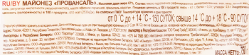 Масло подсолнечное рафинированное дезодорированное, вода, сахар, яичный желток, соль, масло горчичное нерафинированное, регуляторкислотности уксусная кислота, краситель каротин, пищевые волокна цитрусовые.