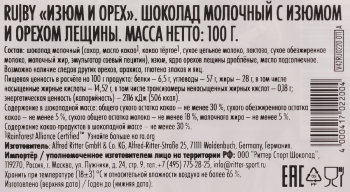 Шоколад молочный RITTER SPORT Ром, изюм, орех, 100г100 г259,90 ₽
