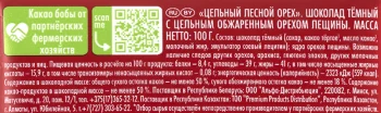 Сахар, какао тертое, ядро ореха лещины, масло какао, молочный жир, эмульгатор (соевый лецитин). Возможно наличие следов арахиса,орехов, глютена злаков, молочных продуктов и яиц. Содержание в шоколадной массе общего сухого остатка какао – не менее 50%.Содержание какао-продуктов в шоколадной массе – не менее 50%.