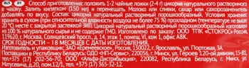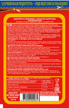 Экстракт цикория, фруктоза, заменитель сухих сливок (сироп глюкозный, растительный жир частично отвержденный, молоко обезжиренное,сыворотка порошкообразная, стабилизатор Е340), ароматизатор каппучино.