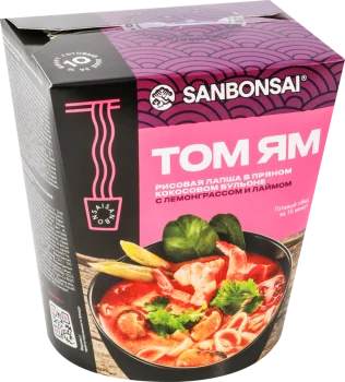 Лапша рисовая SANBONSAI Том Ям, в пряном кокосовом бульоне с лемонграссом и лаймом, 123гНовый123 г240,52 ₽