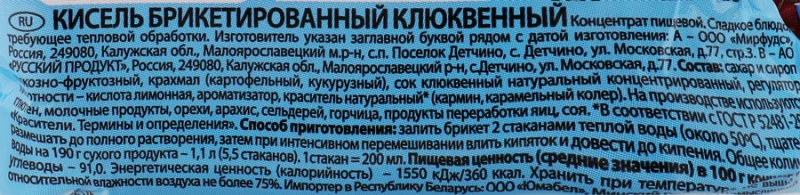 Кисель брикетированный РУССКИЙ ПРОДУКТ Клюквенный, 190г