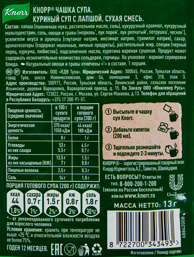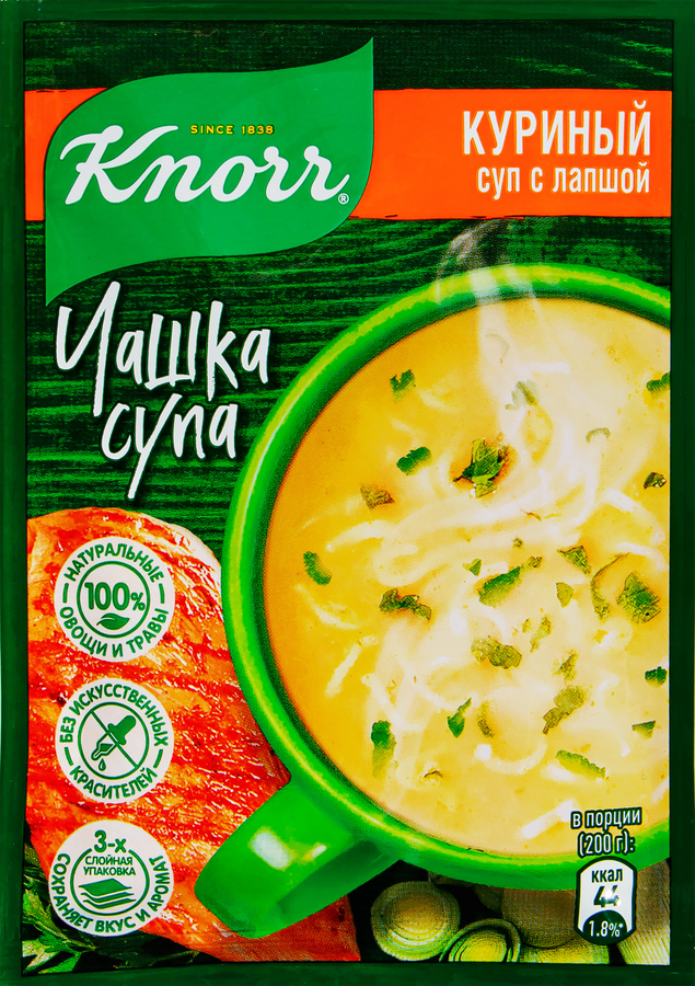 Суп KNORR Чашка супа Куриный суп с лапшой, нежный и согревающий, классический вкус куриного бульона. А овощи и пряности дополняют привычный вкус супа с лапшой. Удобно брать с собой в поездку, на работу, в поход или путешествие.