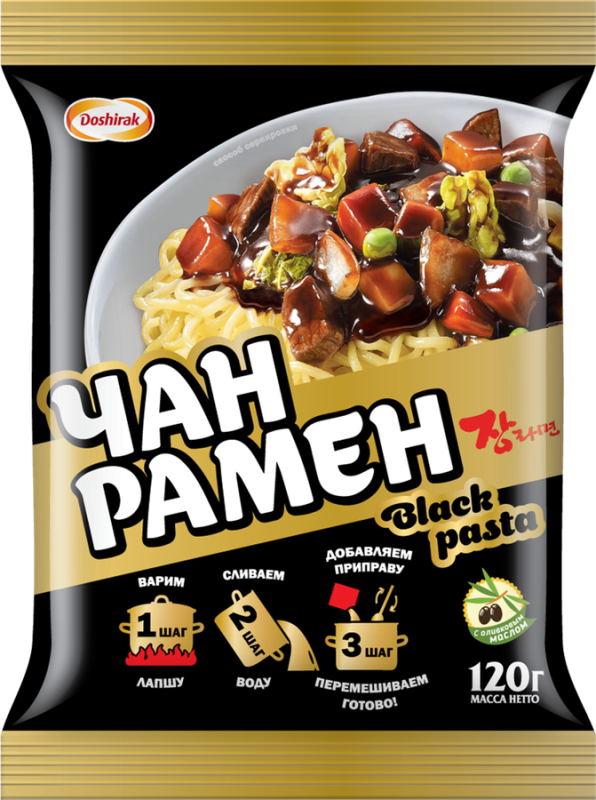 Лапша ДОШИРАК Чан рамен Black Pasta идеально подойдет для любителей азиатской кухни. Она создана по традиционной рецептуре и отличается выразительным вкусом. Лапша в традиционном корейском соусе из соевых бобов – это не просто гарнир, а полноценное сытное блюдо. Смесь растительных масел придает ему особую пикантность. Чан рамен Black Pasta – это второе блюдо, которое употребляется без бульона.