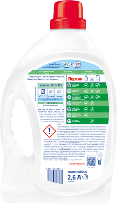 Гель для стирки белого белья ПЕРСИЛ Свежесть от ВЕРНЕЛЬ, 2600мл