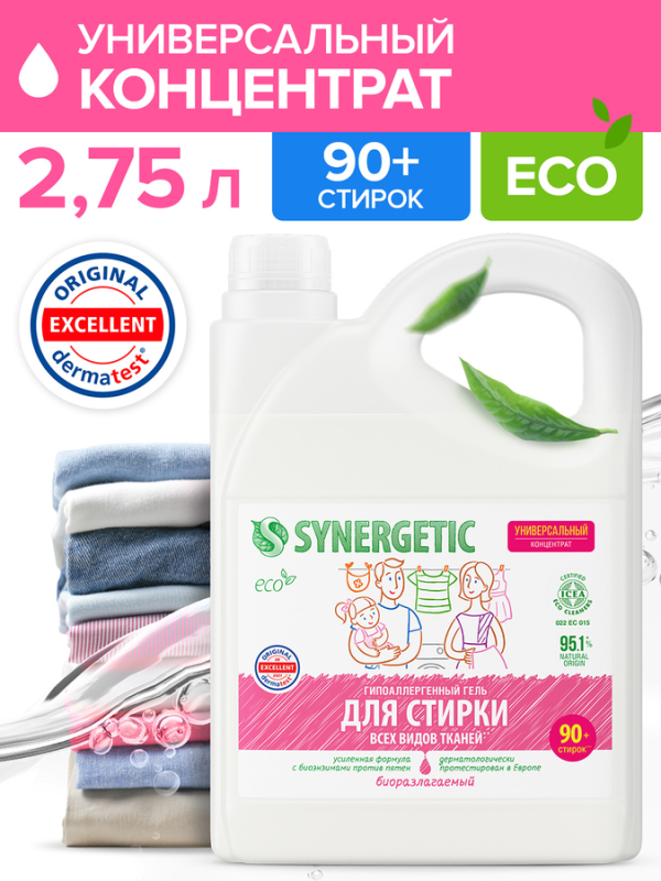 Гель для стирки SYNERGETIC биоразлагаемый универсальный, концентрированный, 2,75л