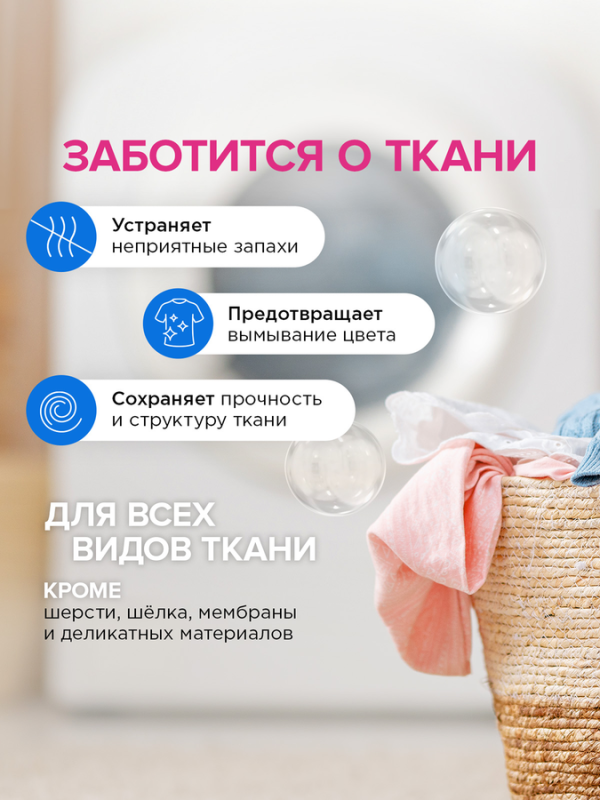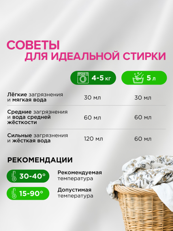5% анионные ПАВ, неионогенные ПАВ, консерванты, ароматизирующие добавки, альфа-изометилионон, цитронеллол, гераниол, гексилкоричныйальдегид, линалоол.
