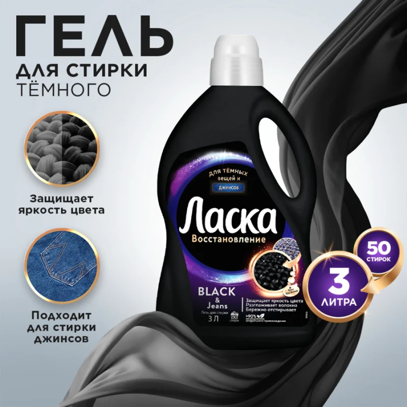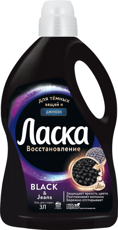 Гель для стирки темных вещей ЛАСКА Эффект восстановления Сияние черного, 3л, 3л