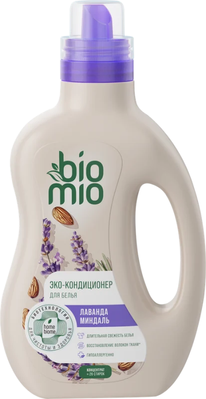 Кондиционер для белья BIOMIO Лаванда, миндаль обогащен инновационной технологией Homebiome. Он эффективно устраняет неприятные запахи и дарит вещам длительную свежесть. Уникальные особенности включают пролонгированный аромат: натуральная отдушка, созданная на основе эфирных масел в сотрудничестве с ведущими парфюмерными домами, обеспечивает длительный и приятный аромат. Подходит для всех типов тканей, включая деликатные, такие как шерсть и шелк. Кондиционер смягчает белье, облегчает глажение, обладает антистатическим эффектом. Благодаря концентрированной формуле для стирки 3–5 кг белья достаточно всего 30мл средства. Подходит для стирки детского белья.