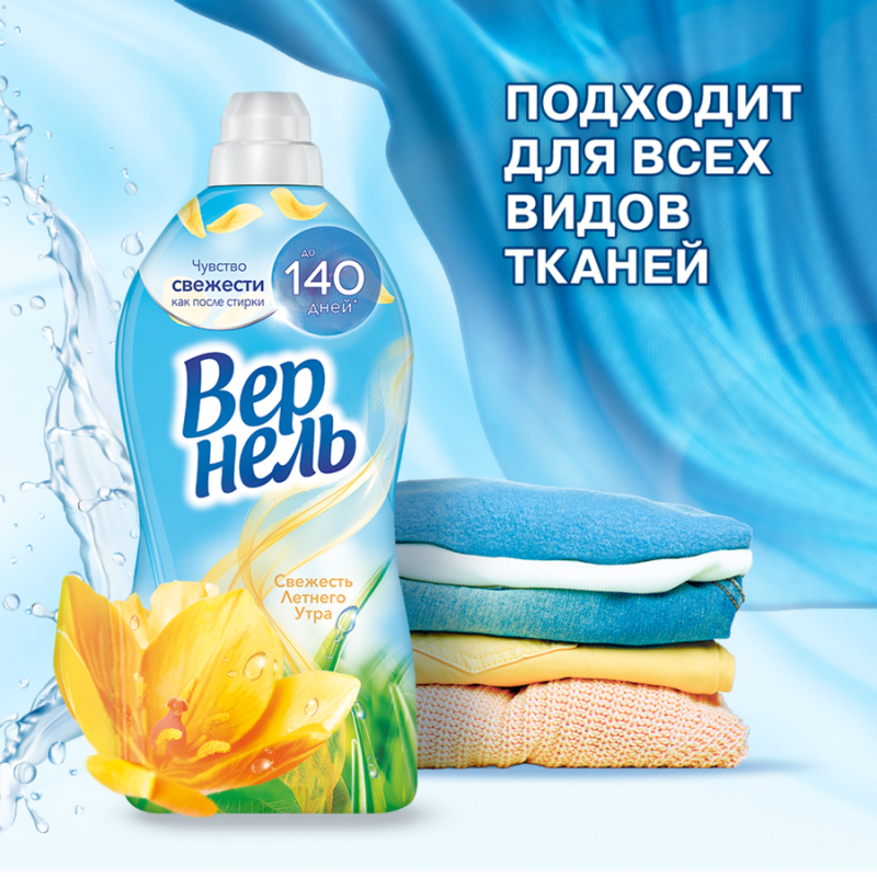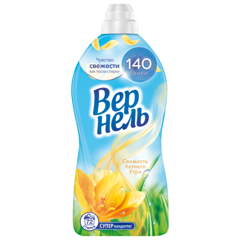 Концентрированный кондиционер для белья ВЕРНЕЛЬ Свежесть летнего утра (72 стирки) подарит белью не только невероятную мягкость, но и легкий пробуждающий аромат. Средство ВЕРНЕЛЬ имеет концентрированную формулу, обеспечивающую мягкость и свежесть белью. Благодаря специальным аромакапсулам в составе кондиционер для стирки ВЕРНЕЛЬ позволит наслаждаться интенсивным ароматом белья до 140 дней. Кондиционер для стирки облегчает глажку и обладает антистатическим эффектом.