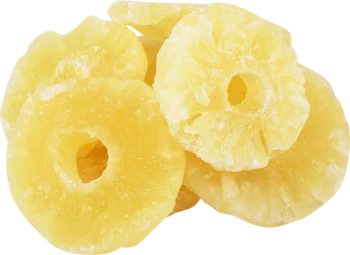 Цукаты ананаса (кубики ананаса, сахар, консервант Е220, регулятор кислотности: лимонная кислота, пищевые красители Е110, Е124, Е102,Е133), изюм (виноград сушеный, консервант Е220, подсолнечное масло), жареные ядра арахиса, миндаля, фундука, кешью.