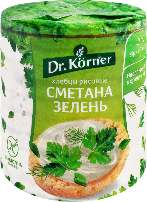 Хлебцы рисовые DR KORNER со сметаной и зеленью – цельнозерновой продукт с воздушной текстурой и насыщенным вкусом. В его составе – цельные злаки без глютена, хрустящие и невероятно вкусные. Хлебцы приготовлены без консервантов, искусственных красителей или ароматизаторов.
