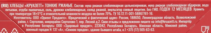 Хлебцы KRUAZETT тонкие ржаные – продукт для тех, кто следит за своим здоровьем и внешним видом. Выпеченные хлебцы сохраняют полезные свойства зерна и витамины, не содержат вредных и искусственныхкомпонентов. Подходят для диетического питания. Содержание микроэлементов и аминокислот позволяет насыщать организм необходимыми ему веществами.