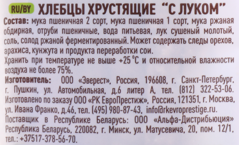 Мука пшеничная 2 сорт, мука пшеничная 1 сорт, мука ржаная обдирная, отруби пшеничные, вода питьевая, лук сушеный молотый, соль,солод ржаной ферментированный.